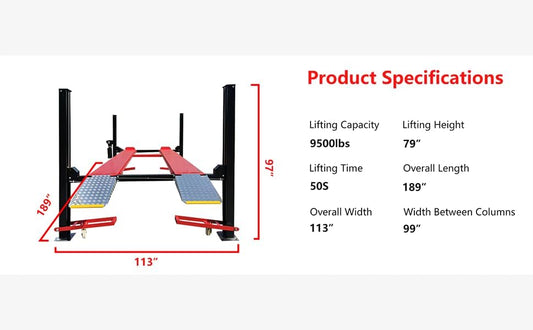 9500lbs 4 Post Lift with Moving Kits/Caster Aluminum Ramp Extra Height Four Post Lift 79" Lifting Height Storage Service Lift Home Parking Lift, 110v, 4H950